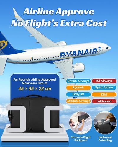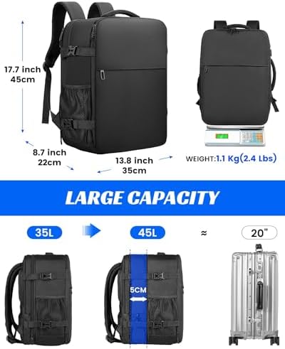 【𝑮𝑹𝑨𝑵𝑫𝑬 𝑪𝑨𝑷𝑨𝑪𝑰𝑻É】:45*35*22cm/17,7*13,8*8,7*8,7inch, la capacité du sac à dos est de 35L~45L, la doublure peut être étendue de 22cm à 27cm, ce sac a dos cabine avion de voyage peut facilement s’adapter sous le siège et les compartiments supérieurs de la plupart des compagnies aériennes. Ce sac à dos de voyage peut contenir un ordinateur portable, des vêtements, un appareil photo, une tablette, une alimentation mobile, des magazines et bien plus encore.
