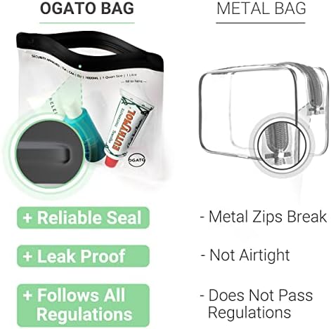 【💧 PACK DE 3, TROUSSE ÉTANCHE ET REFERMABLE】Pas de fermetures éclair en métal qui fuient ! Chaque trousse de toilette transparente Ogato approuvée par la TSA a des coutures triplement scellées et une fermeture éclair entièrement étanche pour empêcher les shampooings, les flacons de voyage rechargeables, les crèmes et autres liquides de s’écouler dans votre bagage à main, votre valise ou votre bagage enregistré.
