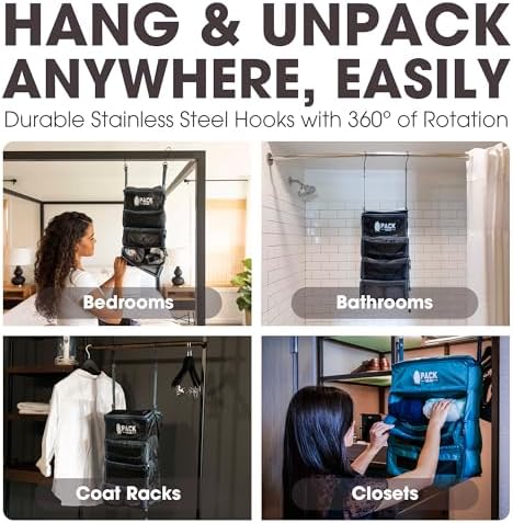 Déballez en quelques minutes : sortez notre organisateur de bagages suspendu de votre sac, accrochez-le avec les crochets en acier renforcé et vous l’avez déballé efficacement.