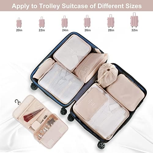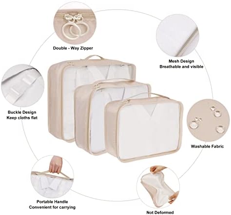Économisez de L’espace et du Temps: Le haut de maille sur la surface des cubes vous permet de voir le contenu instantanément et de trouver tout ce dont vous avez besoin rapidement. Poches de maquillage avec crochets supplémentaires pour une suspension et une utilisation faciles,Les boucles fixes à l’intérieur du cube d’emballage permettent de garder vos vêtements bien rangés. La conception de la poignée robuste rend les sacs de voyage faciles à transporter.